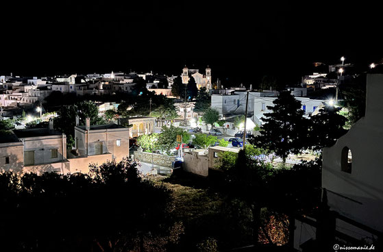 Das späte Nachmittagslicht taucht die Insel in weiche Farben und ich bin völlig geflasht vom Anblick. Vor Pyrgos lege ich einen Abstecher Richtung Marmor-Museum ein, um mir dort ein Ferienquartier, die "Pirgos Suites", anzusehen. Einen schöne Blick über den Ort hat man von dort, aber auch ein paar Schritte mehr zum Einkaufen und zum Bäcker. Vom höheren Preis ganz zu schweigen. Nein, das passt schon bei mir.